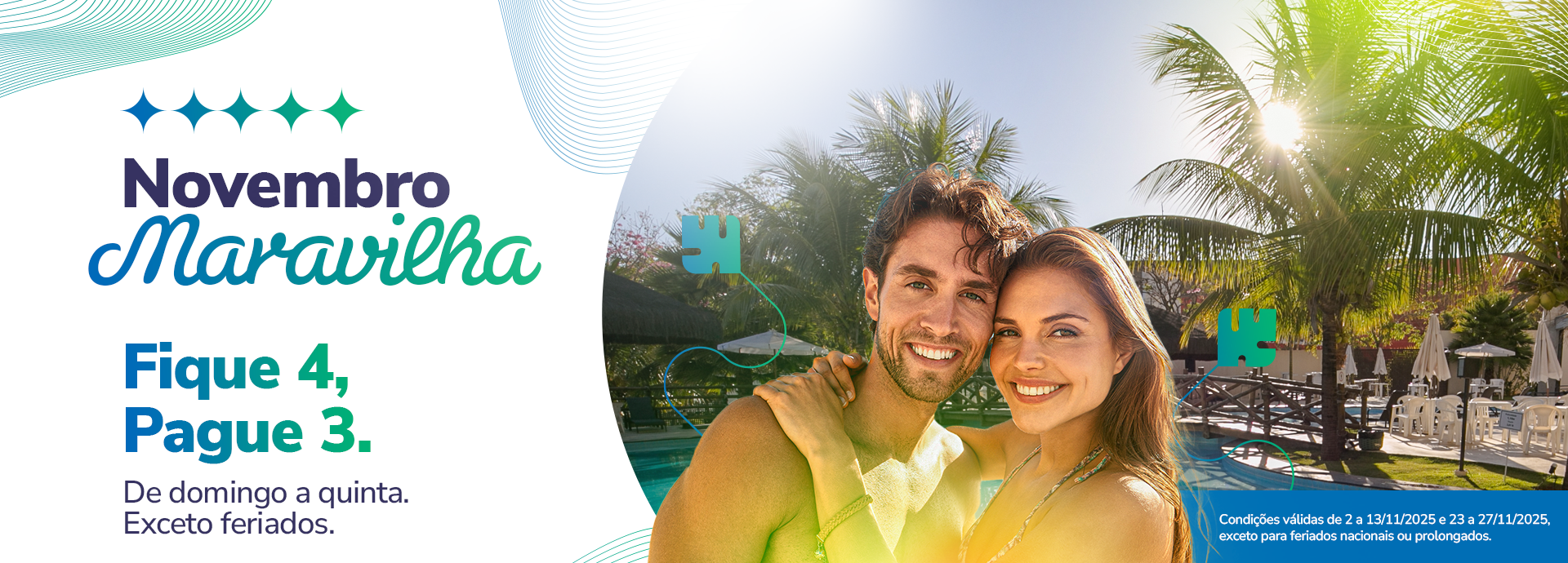 Compre agora, use em 2026! Diárias a partir de R$ 199,00 por pessoa + taxas¹, mínimo de 2 pagantes, para ser usada de 25/01/2026 e 20/05/2026, exceto feriados². Quer mais? Café da manhã e jantar inclusos³ e cortesia de 1 criança de até 11 anos por suíte. Ver Promoção