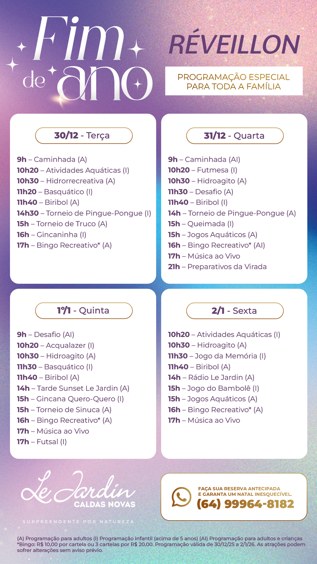 - Confira a programação de atividades para toda a família durante o Ano Novo clicando aqui.